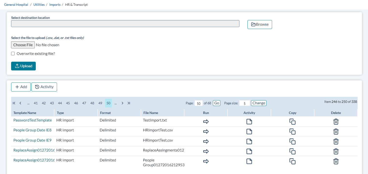 HR and Transcript files are handled in two main steps: first upload, then import.