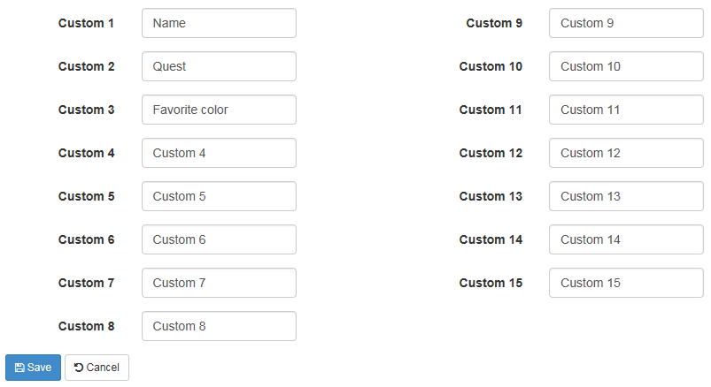 Type a label for each custom field you want to create. Leave any unwanted or unused fields blank.