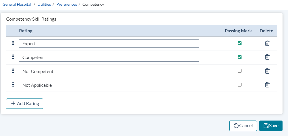 On this page, you can set the text that is used in NetCompetency reporting to describe whether a learner has or has not successfully passed an assigned competency.